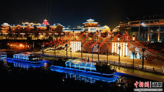 9月14日晚,第五届湖南旅游发展大重点观摩项目——以福文化为主题的大型沉浸式游船演艺项目《福地长歌》㵲水夜游启航展示