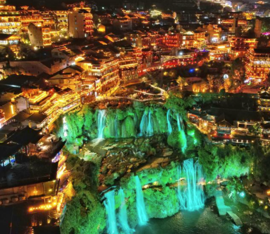 · 柬埔寨《华商日报》:湘西“挂在瀑布上的古镇”夜景出圈(图)