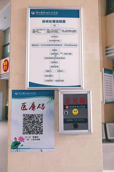 “就医过程中遭遇不平事,扫一扫医院墙上随处可见的‘医廉码’或者关注医院的微信公众号,就可以全天候对医护人员的服务质量和医疗行风问题进行投诉举报啦!”最近去郴四医就医问药的老百姓发现,导诊台多了一项温馨提示。