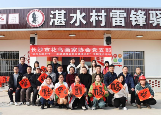 近日,为丰富村民的精神文化生活,共贺新春,营造温馨祥和的节日气氛,长沙市望城区乔口镇社工站联合长沙市花鸟画家协会党支部、湛水村社区社会工作室在湛水村雷锋驿站开展“笔墨凝书香,新年送万福”送文艺进乡村活动。