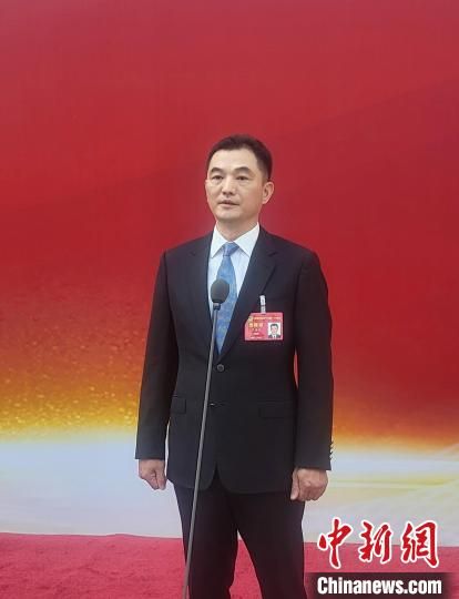 湖南省政协委员、澳门湖南联谊总会会长严海文在“委员通道”接受记者集中采访。 唐小晴 摄