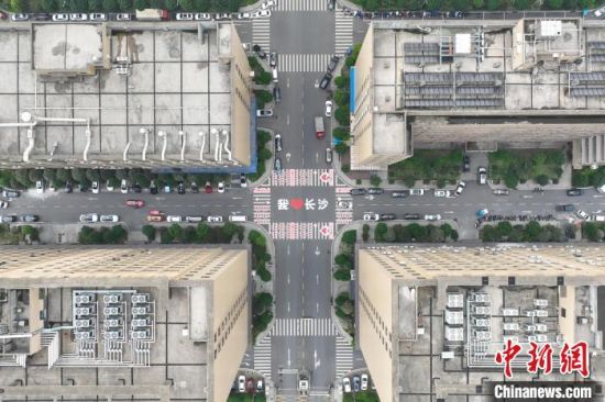 绘有爱心和“我爱长沙”的粉红爱心斑马线。 杨华峰 摄