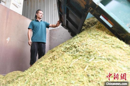 工作人员将稻谷铲入全自动稻谷烘干机。 杨华峰 摄