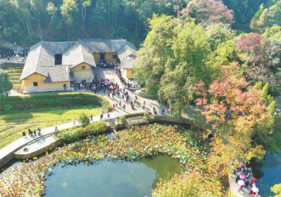 11月1日,游客在韶山市毛泽东同志故居参观。金秋时节,人们纷纷趁着晴好天气来到伟人故里,缅怀伟人的丰功伟绩,接受红色教育。