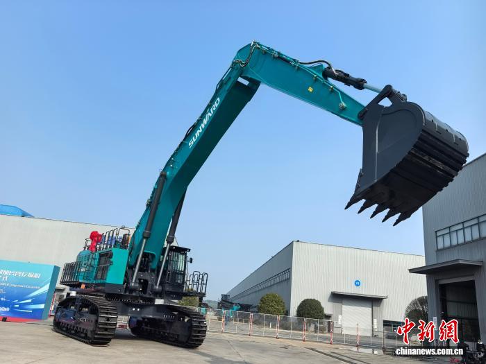 中新网长沙1月6日电 (记者 鲁毅)一台拥有10.8米动臂与7.7米加强斗杆的加长臂挖掘机6日在湖南长沙交付。该设备创造了中国170吨级加长臂挖掘机臂长最长纪录,即将发往中东地区,服务于大型填海项目。