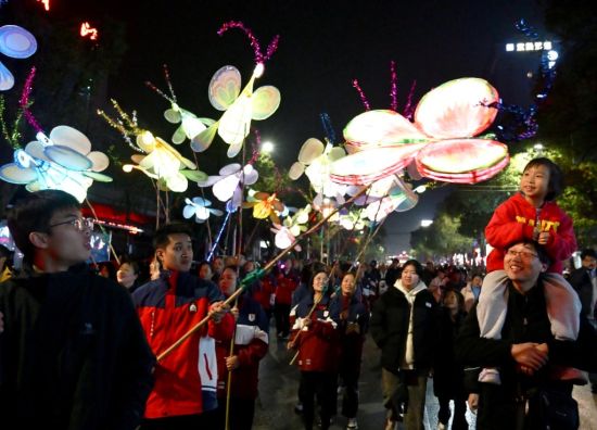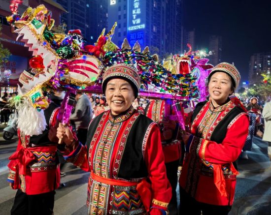 12月3日晚,湖南江华瑶族自治县举行2025“龙腾瑶乡”龙狮灯会,70支队伍巡游展示多种瑶族传统龙灯,营造龙腾盛世庆祝70周年县庆和中华民族一家亲的喜庆氛围。地处湘南的江华瑶族自治县是湖南省唯一的瑶族自治县,也是全国瑶族人口最多的县。中新社记者 唐小晴 摄