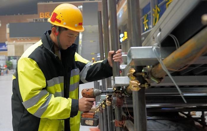 春运前夕,长沙南高铁房建车间利用列车停运后的5个凌晨以及每次短短5小时的作业窗口里,争分夺秒完成长沙南站候车室220盏高空灯具更换,让归乡之旅满溢温暖。