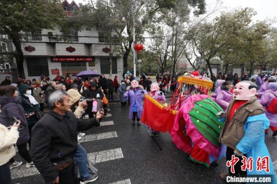 2月24日,正值农历正月十五元宵节,湖南省资兴市举行舞龙舞狮、猜灯谜、大头娃娃表演等年俗活动,欢庆元宵,丰富市民春节文化生活。