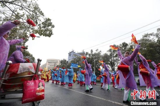 腰鼓队伍巡游。李科 摄