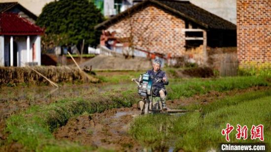 种粮大户冯冬林正在打泥浆准备育秧。 周铁东 摄