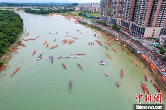5月31日,道州龙船赛在湖南永州道县潇水河举行。中新社记者 杨华峰 摄