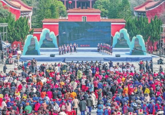 3月16日,在江华瑶族自治县盘王殿前、月亮湖畔,瑶歌声声,响彻云霄,一场汇聚湘粤桂鄂四省区瑶族同胞的文化盛宴——“大地欢歌·惊蛰赶鸟”瑶歌会在这里举行。此次活动作为2025年全国春季“村晚”示范展示活动及江华瑶族自治县成立70周年系列庆典的重要组成部分,吸引了300余名江华民间歌手以及四省区共28支瑶歌表演队参与。