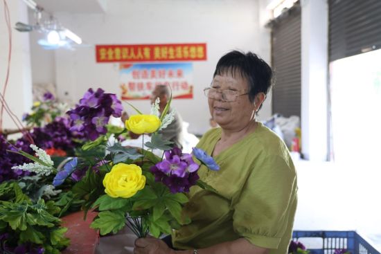 走进冷水滩区普华工艺制品有限公司,只见村民们忙着赶制订单,一朵朵雏菊、向日葵等仿真花束在他们的巧手下渐次成型。