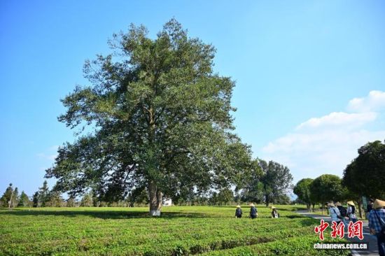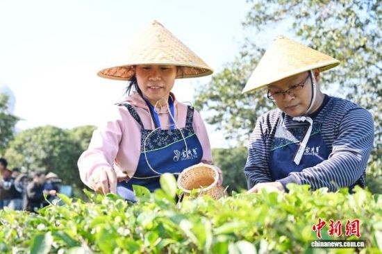图为海外媒体代表体验采茶。中新社记者 杨华峰 摄