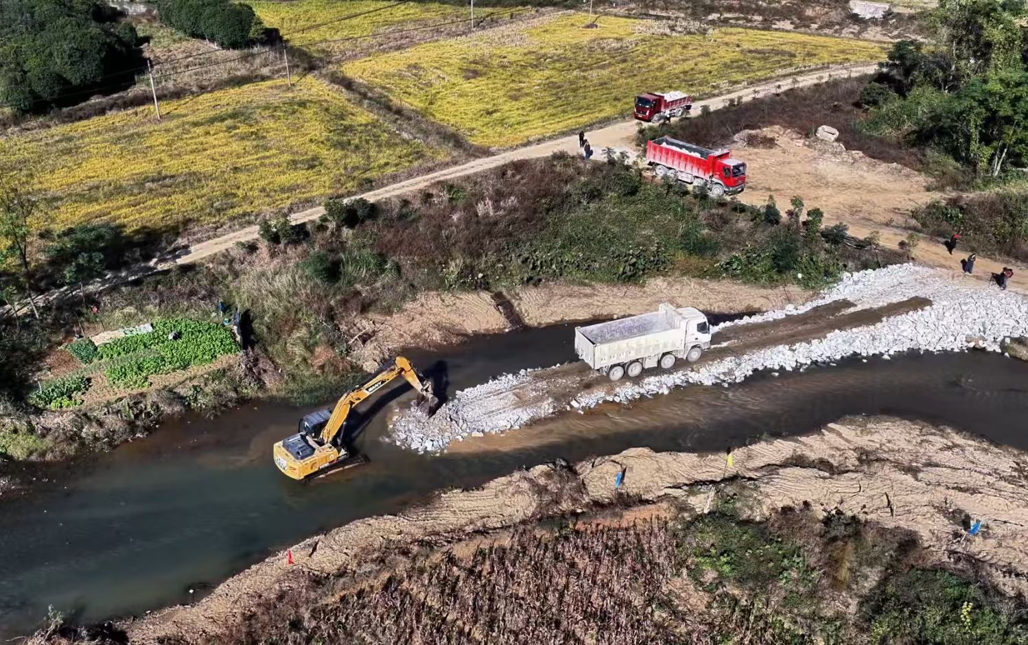 中新网湖南新闻1月7日电 (刘翔宇 罗晗敏)冬日暖阳下,湘江上游重要支流郴江郴州北湖区综合治理二期工程现场机械轰鸣,多台挖掘机、运输车协同作业,施工便道贯通在即。