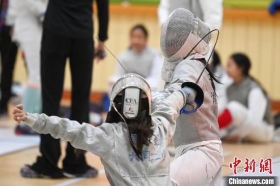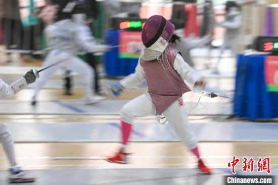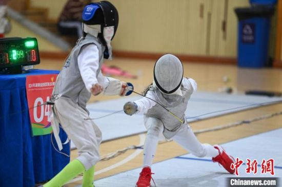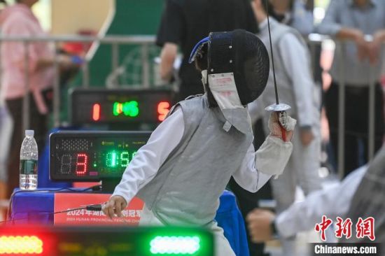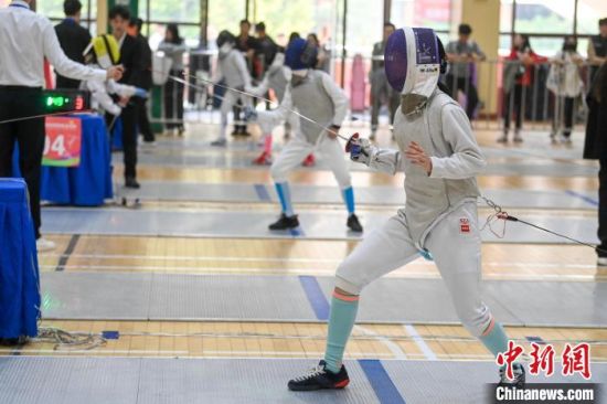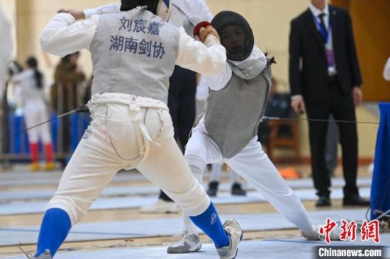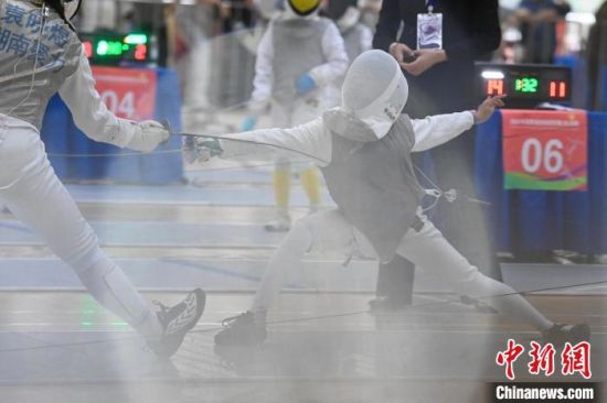 图为选手被对手刺中头部。中新社记者 杨华峰 摄