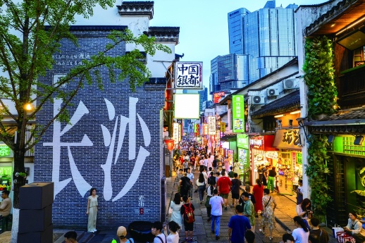 游客在长沙市天心区太平老街打卡、游玩。 新华社 图