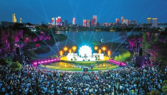 7月14日晚,湖南湘江新区后湖设计创意园西广场,浅海指南乐队在台上演出。当晚,“艺术湘江 文韵新区”2024创意后湖公共艺术年之后湖湖畔音乐会上演,为群众带来丰富的文化体验。湖南日报全媒体记者 辜鹏博 摄