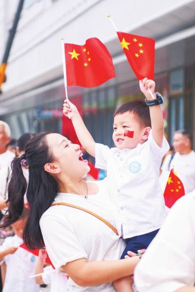 9月30日,娄底市娄星区格林幼儿园开展庆祝活动,小朋友们挥舞五星红旗,祝福祖国,迎接国庆、中秋双节的到来。 吴永华 摄(湖南图片库)