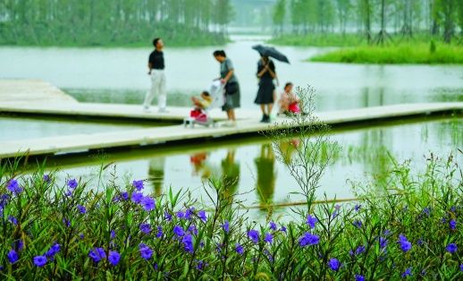 10月8日,市民、游客在长沙大泽湖湿地公园休闲游玩。该园内栖息着近200种鸟类,植被丰富、生态优良,被誉为“城市绿芯”。国庆中秋期间,园区开展了形式多样、内容多元的各种活动,满足不同年龄段市民、游客的游览需求。
