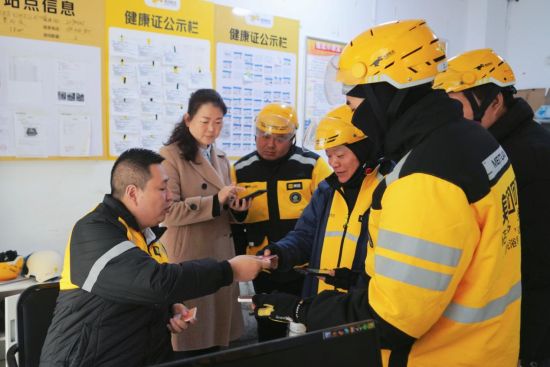 外卖配送员依托“职工之家”APP现场核销兑换福利。