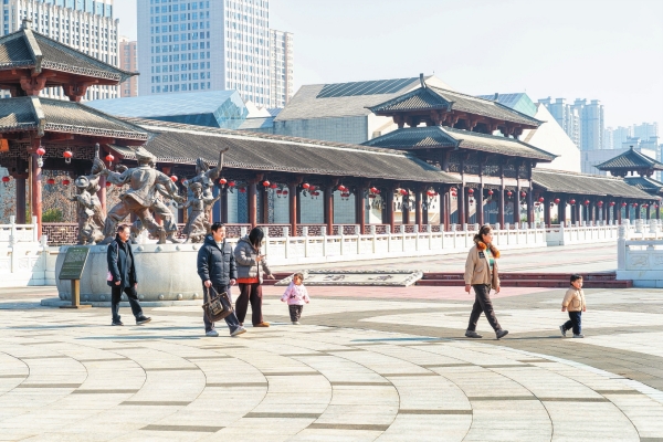 1月11日,吉首市吉凤街道湾溪社区,市民在湘西民族文化园游览。梁永鸿 摄(湖南图片库)