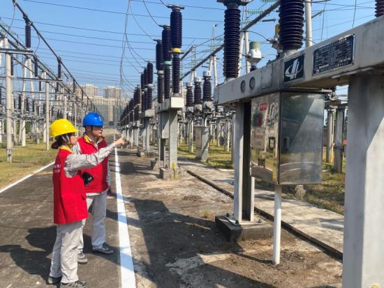 工作人员在变电站开展保电特巡。