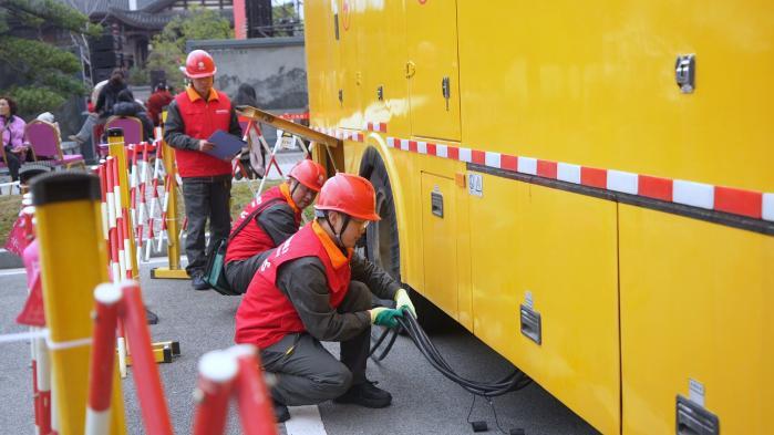 “发电机组已经调试完毕,随时可以启动。”在维港十字街舞台旁,保电人员尹军正在检查应急发电设备。他说,一旦出现故障,发电机组可以快速完成切换,确保舞台演出不受影响。