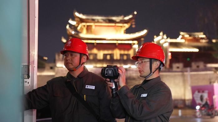 “明天就是元宵节了,大家再仔细检查一遍,特别是接头处一定要测温,不能有半点马虎。”在奇幻大庸城外,国网张家界供电公司保电人员周乐和同事对迎南I线进行当天的第三次巡视。他手持红外测温仪,仔细查看每一个电缆接头和开关设备。