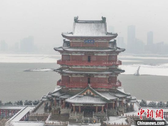 1月22日,位于赣江之畔的江南名楼滕王阁在风雪中更显古韵。中新社记者 刘力鑫 摄