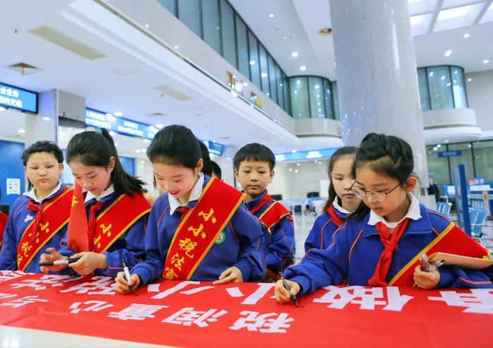 理论授课结束后,税务部门邀请10名优秀学生代表,受聘成为“小小税法宣传员”。孩子们走进芦淞区税务局办税服务厅,近距离沉浸式体验办税服务场景,直观了解税收工作流程与便民服务举措。大家踮起脚尖在“争做小小税法宣传员”红色横幅上签名,用稚嫩笔触许下坚守税法、诚信向善的童真承诺。从校内课堂静心学税,到办税一线亲身悟税,打破空间壁垒、延伸普法触角,构建起“课堂教学+实景体验”的立体化普法模式,让税收理念入脑入心。