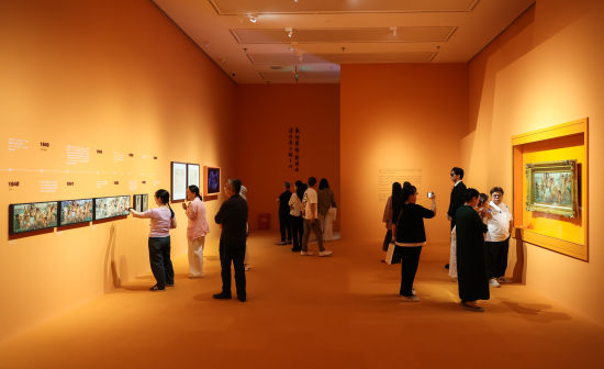 10月1日,“我的祖国,值得‘讲’奖”特别活动在长沙芒果未来艺术中心开幕。活动现场设置多重特色体验环节,观众可在齐白石《祖国颂》真迹前,通过朗诵、歌唱、语音录制等形式,直观表达对祖国的真挚祝福。同期推出的“千里江山奇幻游”数字光影展,以科技手段构建沉浸式青绿山水世界,让观众仿佛置身画中;“群星闪耀时”国画展则集中展出齐白石、徐悲鸿等艺术大师的40幅真迹,既兼具艺术鉴赏深度,又融入亲子互动设计,为不同年龄段观众打造独特的美育体验,在国庆佳节为市民带来丰富的文化盛宴。 董媛丽 摄