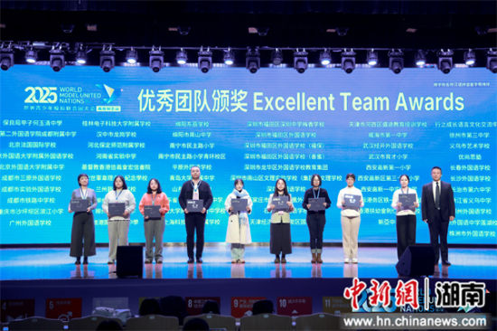 中新网湖南新闻12月2日电(于梦媛 王佳奕 徐勇)11月29日至30日,2025世界青少年模拟联合国大会(以下简称世青模联)高级别会议在北京召开。株洲市外国语学校模联团队共有16人进入会议,1人代表分会场在千人礼堂宣读决议草案。该校荣获大会“最佳团队奖”,15位老师获“优秀指导老师”荣誉称号。