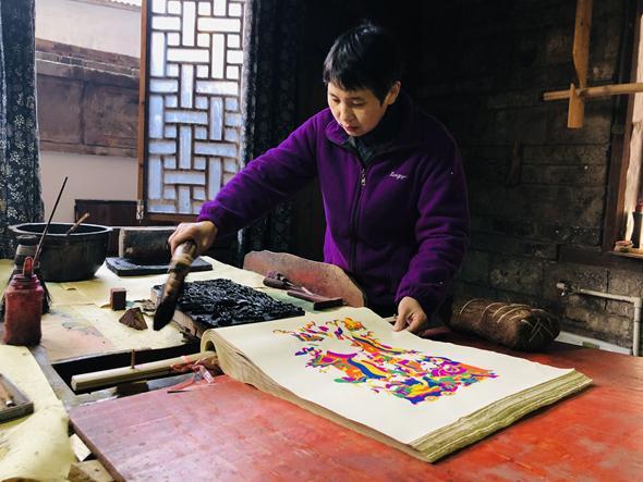 作为湖南省唯一的手工木版水印年画,滩头木版年画历经300余年岁月沉淀,其从原料造纸、刷底、刻版,到七次印刷、七次手绘的完整工序,共计二十余道流程,且全程在同一地域完成生产,这一独特工艺在全国年画品类中实属罕见。