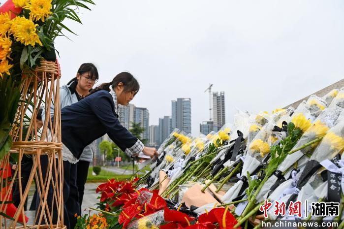 中新网湖南新闻4月3日电 (徐靖宇)清明将至,来自长沙民政职业技术学院的青年学子们,冒雨来到湖南革命陵园,为长眠于此的革命先辈扫墓鲜花。