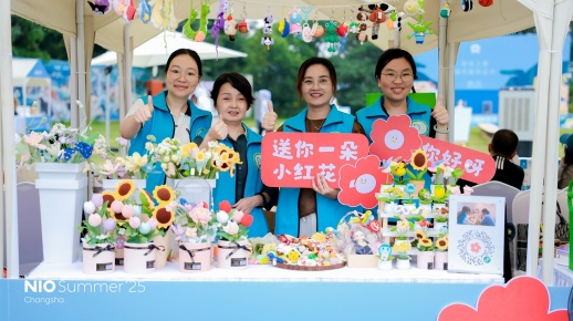 侯佳(左三)手拿“送你一朵小红花”宣传板,参与病友关爱活动。 受访者供图