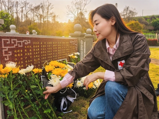 长沙市红十字遗体和人体器官捐献纪念广场,杨丽红在为器官捐献者献花。 受访者供图