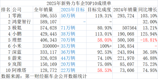 随着12月份结束,新势力也交出了2025年的年度成绩单,总体而言,只有零跑、小米和小鹏三个品牌完成了全年的销量目标。