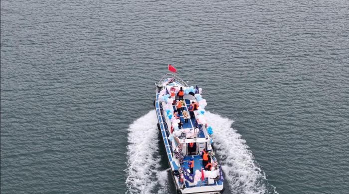 在瑶族图腾园感受热烈欢迎仪式后,队员们首站探访县民族中医医院,通过观看宣传片、品尝瑶药药膳、体验特色产品,沉浸式感受瑶医瑶药的康养魅力。大家随后泛舟涔天河瑶池,欣赏生态美景。“江华山水人文俱佳,真心推荐大家前来旅游。”?队员邢隽恺说。