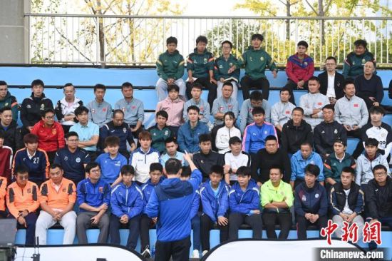 图为孙继海向当地基层足球教练分享青训心得。中新社记者 杨华峰 摄