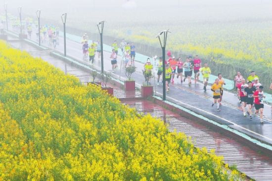3月17日,以“三湘四水,相约罗文”为主题的2024湖南南县罗文花海马拉松赛鸣枪开赛。来自湖北、广东等20个省份的4500余名跑者共赴油菜花海,在奔跑中拥抱春天。近年,南县大力推进“体育+旅游”融合发展,体育旅游已成该县消费新热点。
