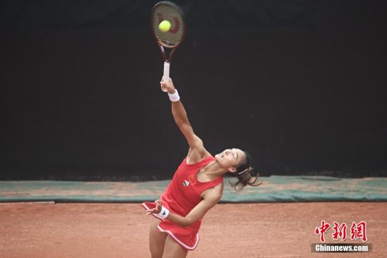 郑钦文发球。中新网记者 杨华峰 摄