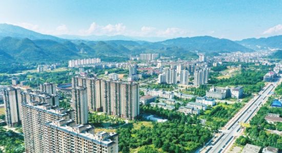 7月24日,俯瞰城步苗族自治县城北新区,满目葱绿,呈现出一幅宜业宜居的城市画卷。近年来,该县坚持以生态优先、绿色发展理念为引领,不断提升城市生态景观功能,让群众共享“推窗见绿、开门见景”的生态红利。