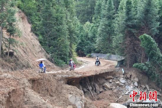 遭受泥石流与塌方的湖南资兴市X017线州门司至烟坪的公路多处路基被毁。