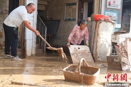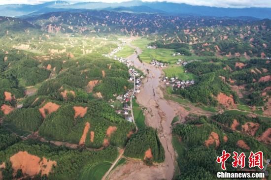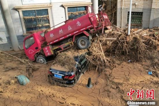 7月31日,湖南资兴市州门司镇街头的汽车被山洪冲击。中新社记者 杨华峰 摄