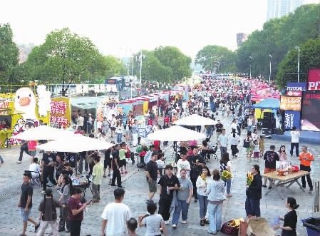10月12日,株洲市体育中心体育场外,文旅集市热闹非凡。当晚,湘超联赛株洲队主场将对阵怀化队。在比赛期间,株洲市借赛事东风,推出相关文旅主题市集,带动文旅消费。