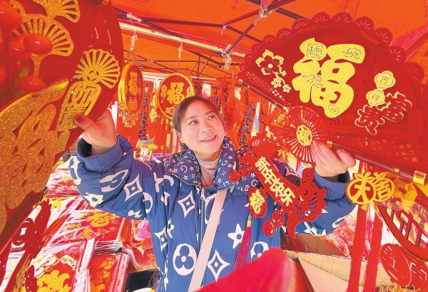 2月8日,通道侗族自治县城东年货集市,市民在选购新春饰品。 陈俊宇 摄(湖南图片库)