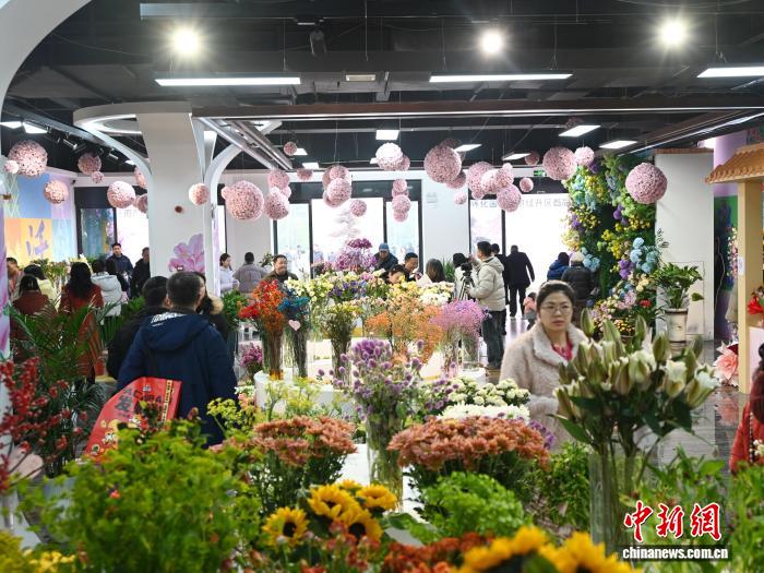 在鲜花展区,通过“湘滇·澜湄线”国际货运班列运输的云南鲜花争奇斗艳,花香扑鼻。花艺师正现场制作花束,搭配绿植与装饰纸,吸引不少年轻人打卡拍照。