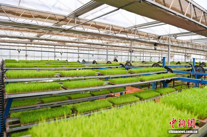 4月2日,长沙县春华镇智能化育秧工厂,秧苗长势良好。中新社记者 杨华峰 摄